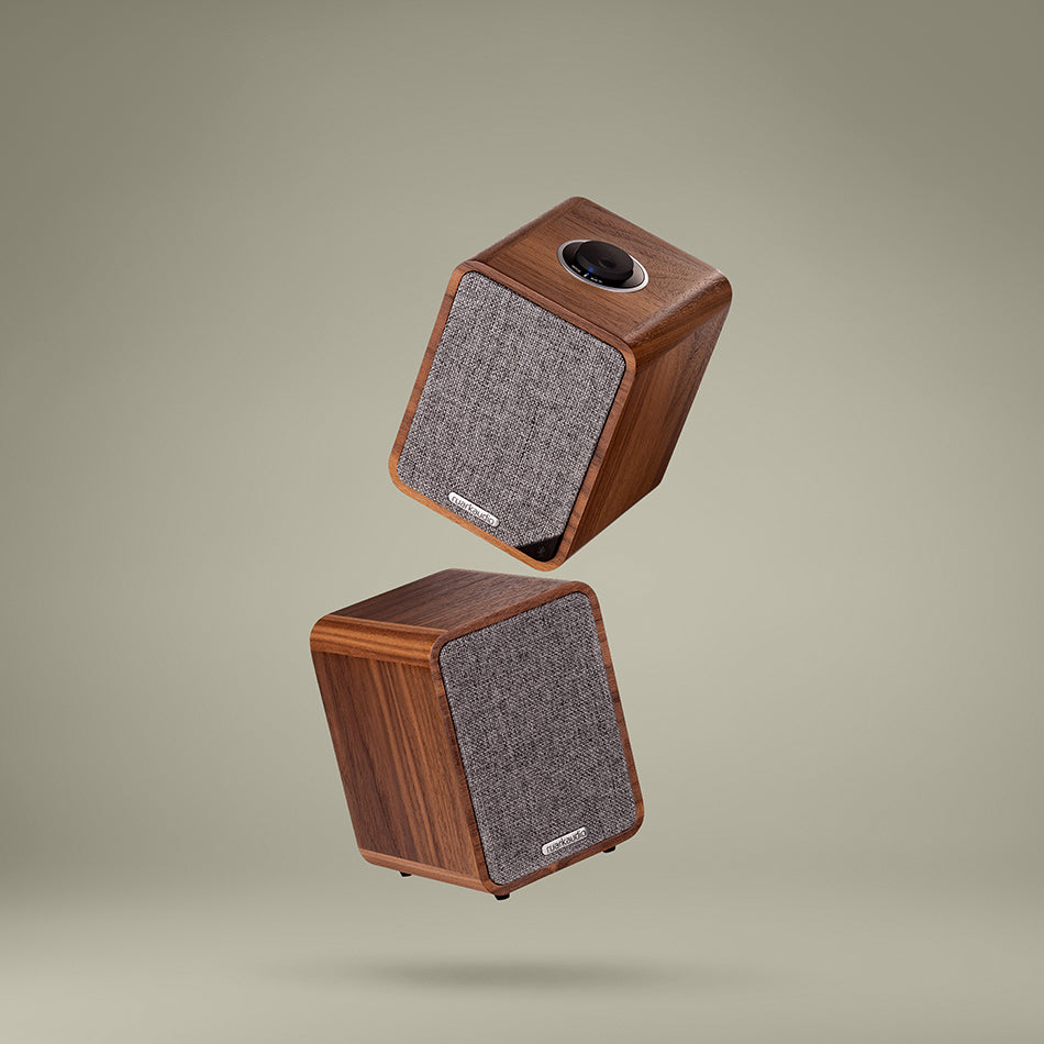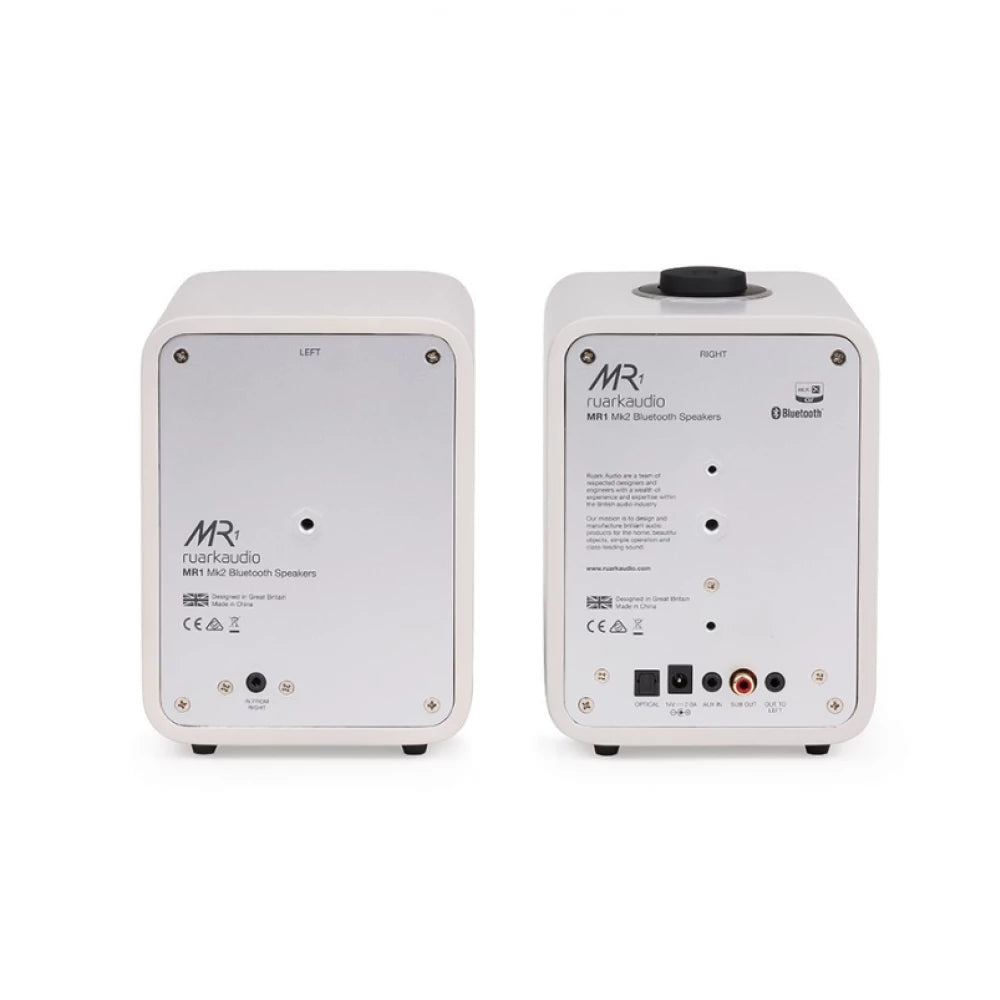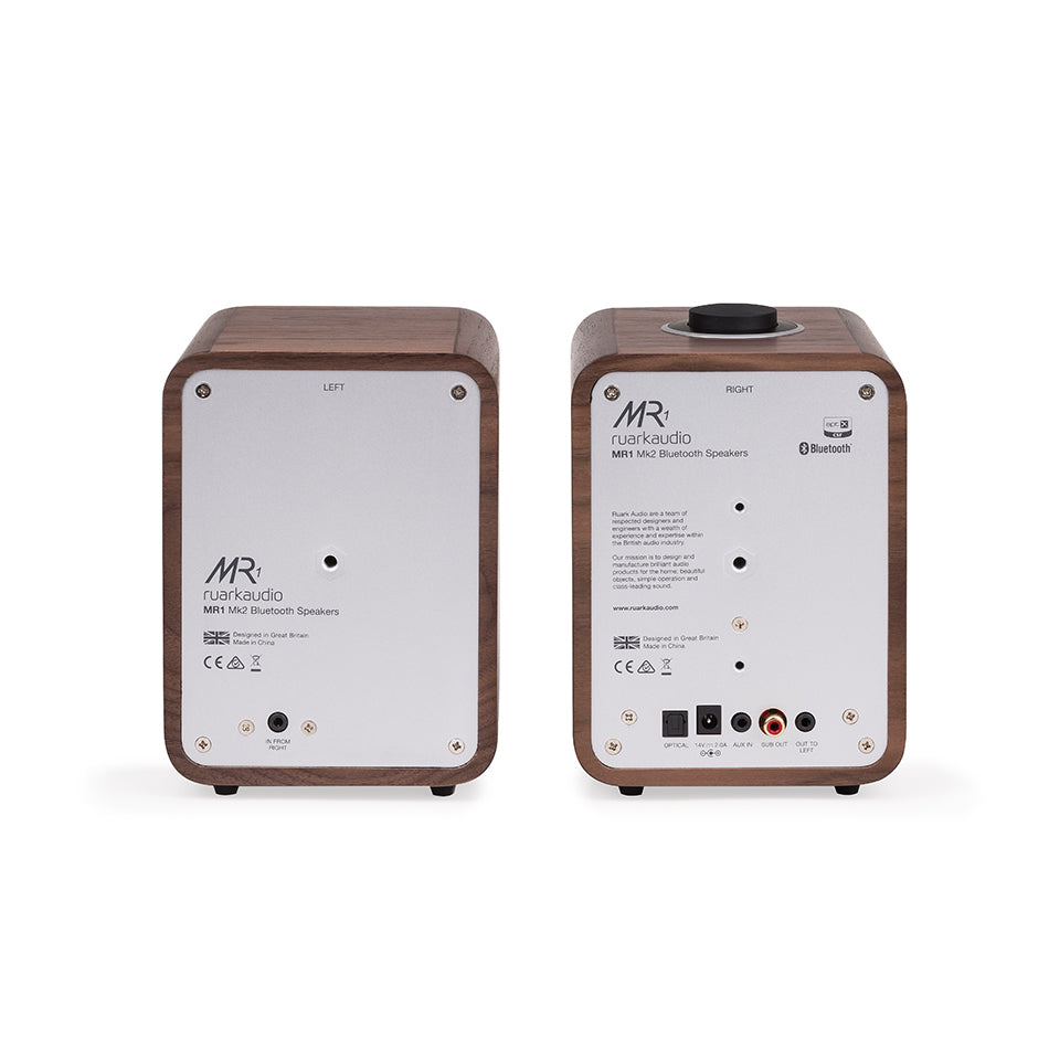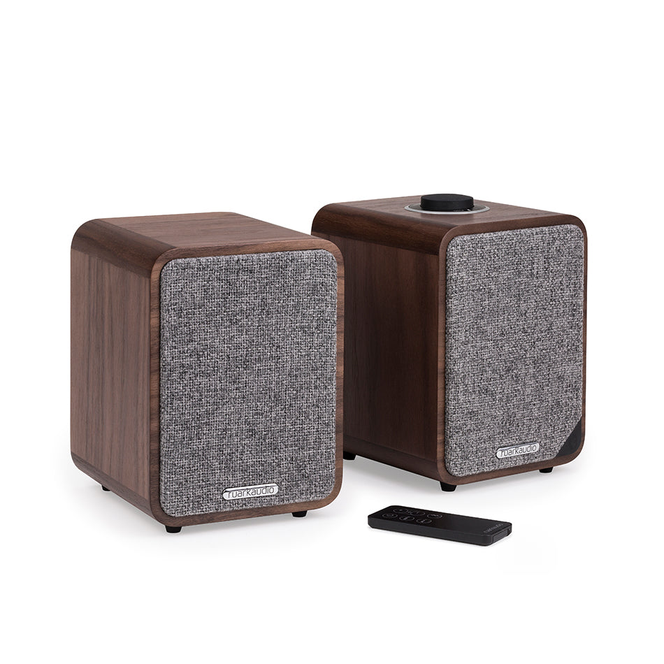 The MR1 Mk2 features a handcrafted wooden cabinet that is both aesthetically pleasing and acoustically superior, housing custom-designed drivers that deliver a rich, detailed soundstage. Each speaker is powered by a high-fidelity Class A/B linear amplifier, ensuring a musical performance that belies its small size. The system includes a high-quality Bluetooth receiver with aptX technology for CD-quality wireless streaming, alongside a digital optical input for easy connection to modern TVs. The distinctive RotoDial controller on the master speaker allows for intuitive volume and source management, while the attractive fabric grille provides a contemporary look.