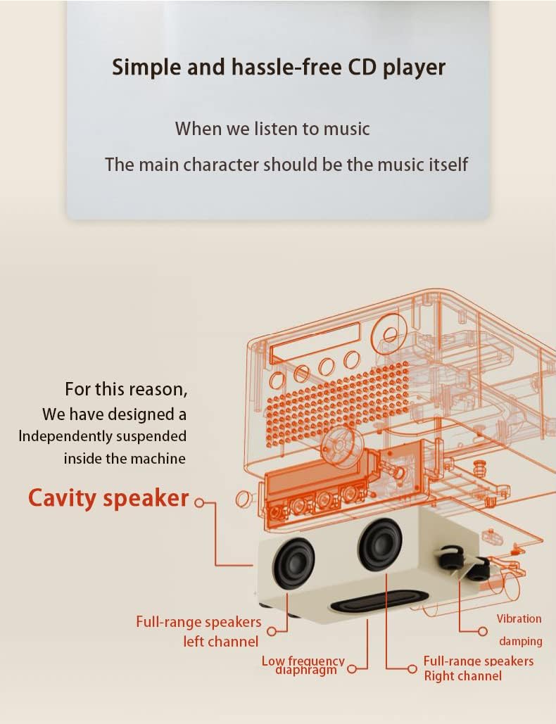 Independent Suspension Design: The internal speaker cavity is independently suspended to minimize vibrations and ensure stable CD playback.