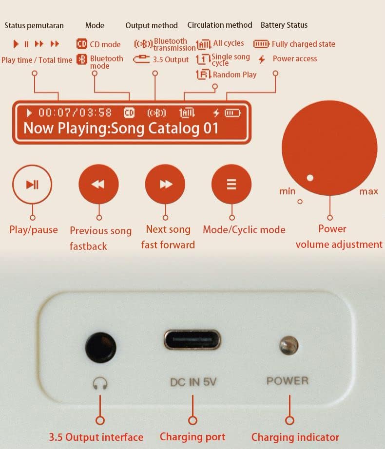 Multi-Format Compatibility: Supports standard CDs and mini CDs, along with digital formats like MP3, WAV, and WMA.